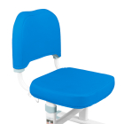 Стул, идущий в комплекте, также как и стол регулируется по высоте с помощью ступенчатого механизма. На ножке есть ростовая шкала-подсказка с соотношением роста ребенка и высоты самого стула. Также сиденье и спинка выполнены со специальной перфорацией, чтобы ребенку было комфортно переносить жаркое время года, а специальная ручка поможет легко перенести стульчик по комнате.