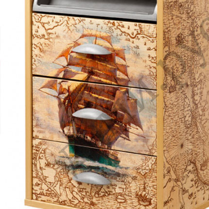 Можно выбрать вариант тумбы с красивым рисунком, который наноситься методом ультрафиолетовой печати. Такая печать считается самой экологичной технологией и имеет высокую стойкость к истиранию. Поверхность можно мыть даже с использованием чистящих средств