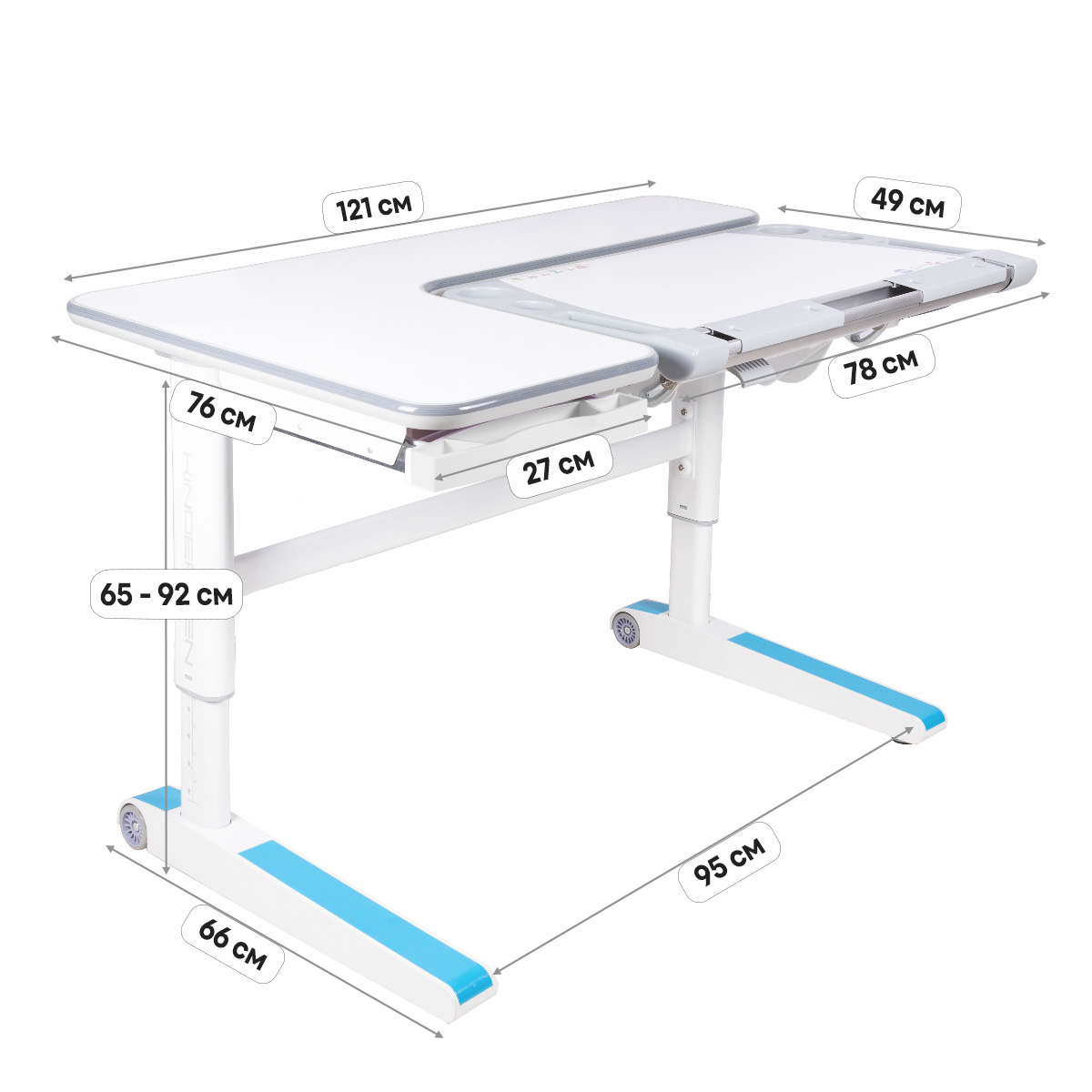 Растущая парта сделана с учетом всех необходимых требований к растущему столу. Диапазон регулировки от 53 до 105 см дает возможность занятий как сидя, так и стоя, что очень полезно для осанки и общего состояния организма. Ортопеды рекомендуют менять рабочее положение каждые 30-45 минут.
